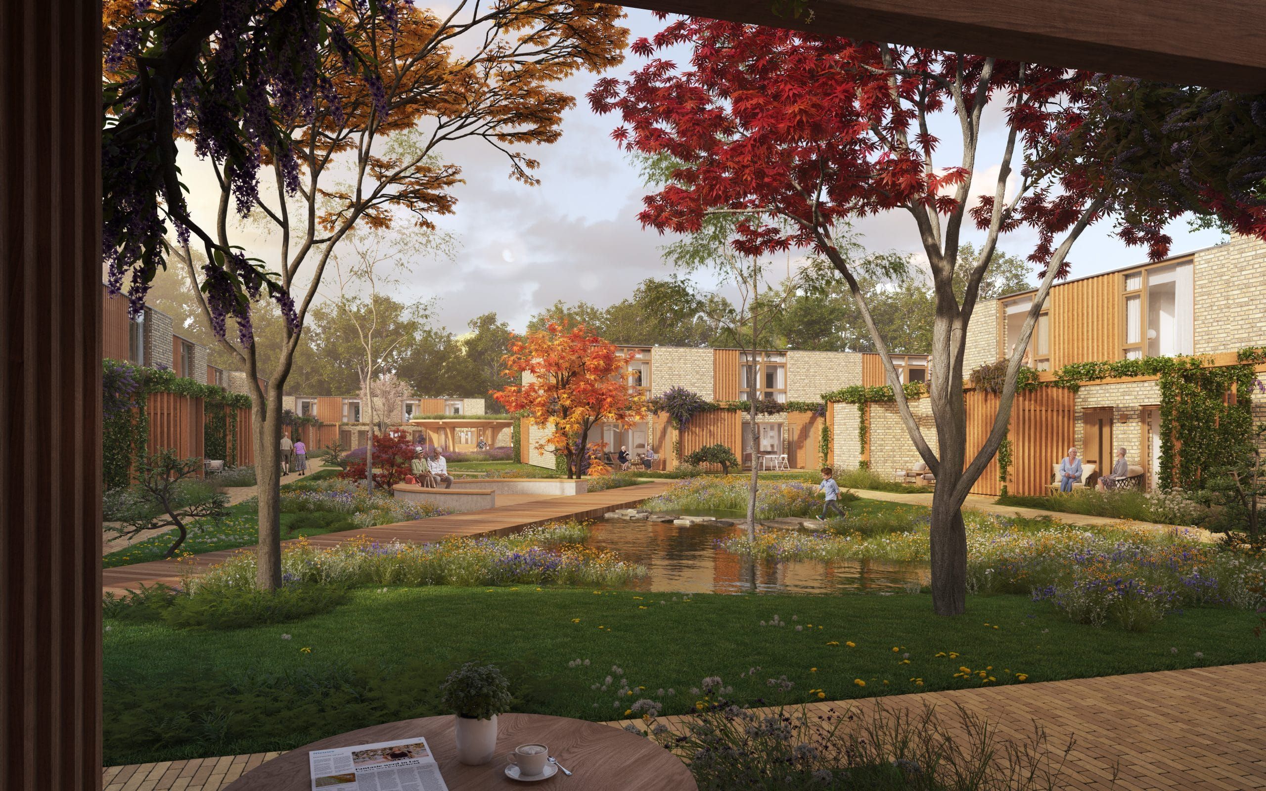 In Hof Driekamp staan samen leven en samen wonen centraal. Dat proeft u overal in terug. Zo kiezen we er bewust voor om de auto zoveel mogelijk uit het zicht te hebben, waardoor ruimte ontstaat voor ontmoeting. Daarvoor ontwerpen we voorzieningen in het hofje, zoals de gezamenlijke thee- en kruidentuin en het paviljoen, de Levensboom. De Levensboom is dé plek om samen te genieten van de zon of met elkaar activiteiten te ondernemen. En wat dacht u van tai chi of yoga om in beweging te blijven, een kaart- of schaakspel voor de nodige hersengymnastiek of gewoon gezellig een kopje kruidenthee uit eigen tuin te drinken.